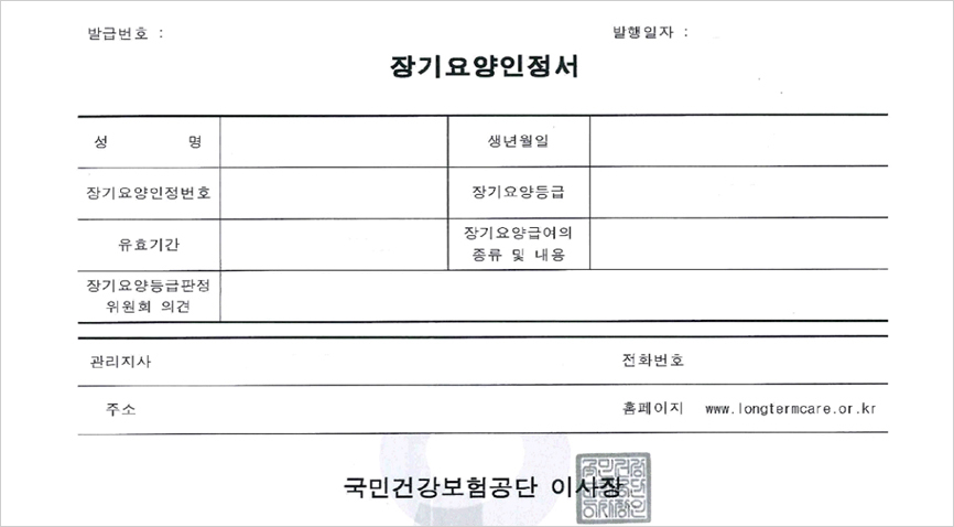 ※ 장기요양인정서 : 수급자로 판정받은 자에게 주는 증서